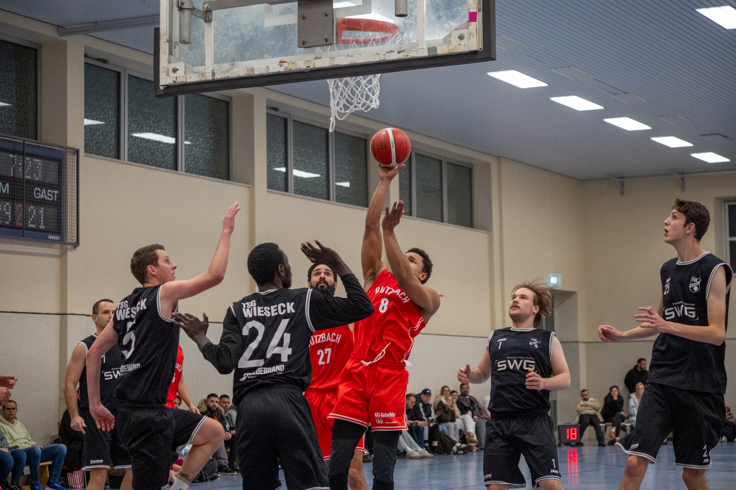 Das Spitzenspiel der Landesliga Nord versprach schon im Vorfeld ein Spektakel: Der TSV Butzbach, bisher ungeschlagen und souveräner Tabellenführer, empfing mit der TSG Wieseck den ebenso ungeschlagenen und spielstarken Tabellenzweiten. Die Partie wurde zum emotionalen, intensiven und teils chaotischen Basketballkrimi, der am Ende mit einem 84:87 aus Sicht der Gastgeber endete – und aus Butzbacher Sicht vor allem eines deutlich machte: Dieses Spiel hat man sich in vielen Phasen selbst schwer gemacht.