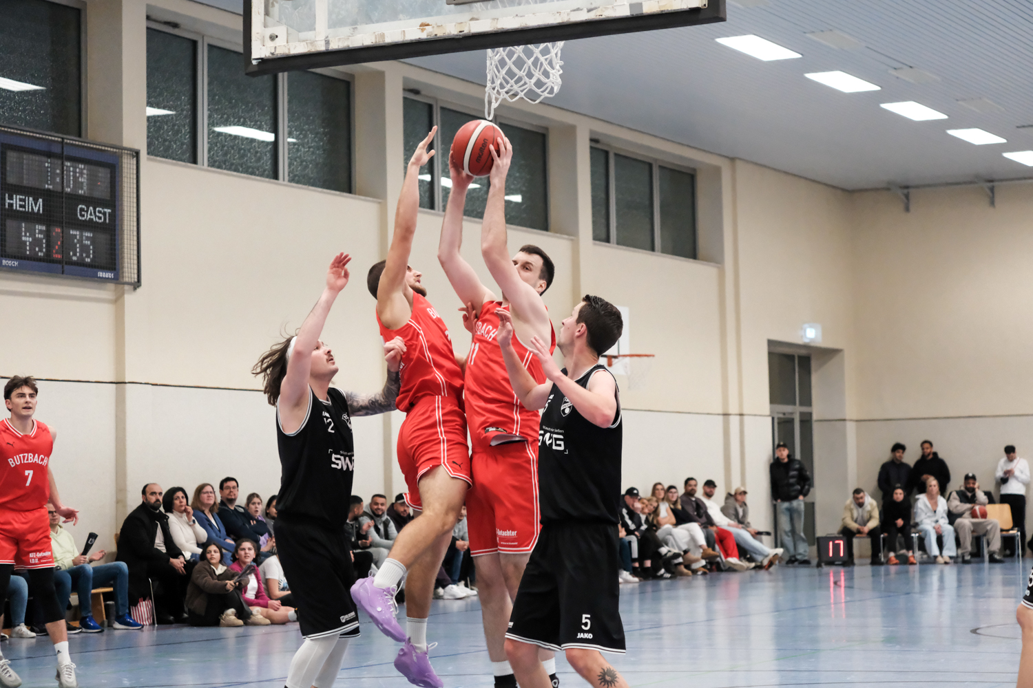 Doch das Spiel war noch lange nicht entschieden. Butzbach kam kämpferisch in den Schlussabschnitt, startete einen kleinen Run und drehte das Momentum. Kurzzeitig lag der TSV wieder mit +5 Punkten vorne. Die Halle tobte, das Team wirkte wieder lebendiger und zielgerichteter.